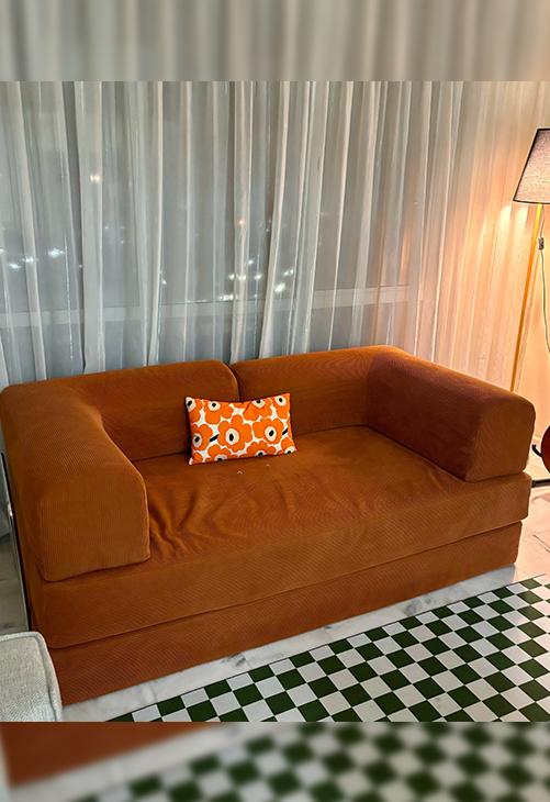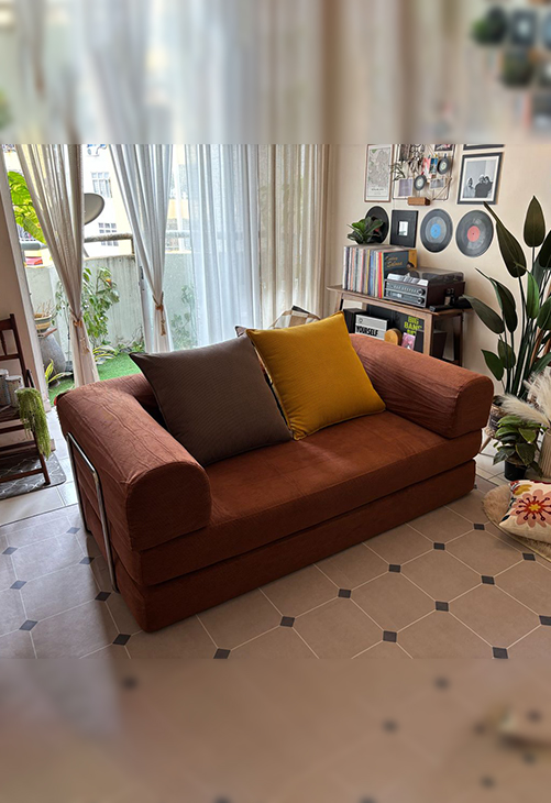 "Every time my friends come over, this sofa jadi tempat favorite utk kitorang lepak. Perfect utk hangout. Kain dia lembut and senang nk jaga. Really happy with this purchase!"